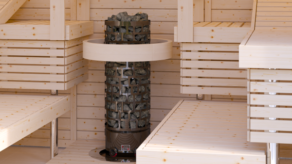 Om du letar efter ett prisvärt bastuaggregat är Aries Round Black-modellen ett utmärkt val. Vårt bästsäljande aggregat har nu ett fantastiskt svart stålhölje som skapar en fin kontrast mellan de naturliga färgerna på träet i bänkarna och bastustenarna. Aries Round Black har hög stenkapacitet för mjukare och fuktigare löyly. Den inbyggda stenavståndet förbättrar luftflödet inuti aggregatet och gör uppvärmningstiden snabbare. Passar från mindre till större bastur (3-26 m³).