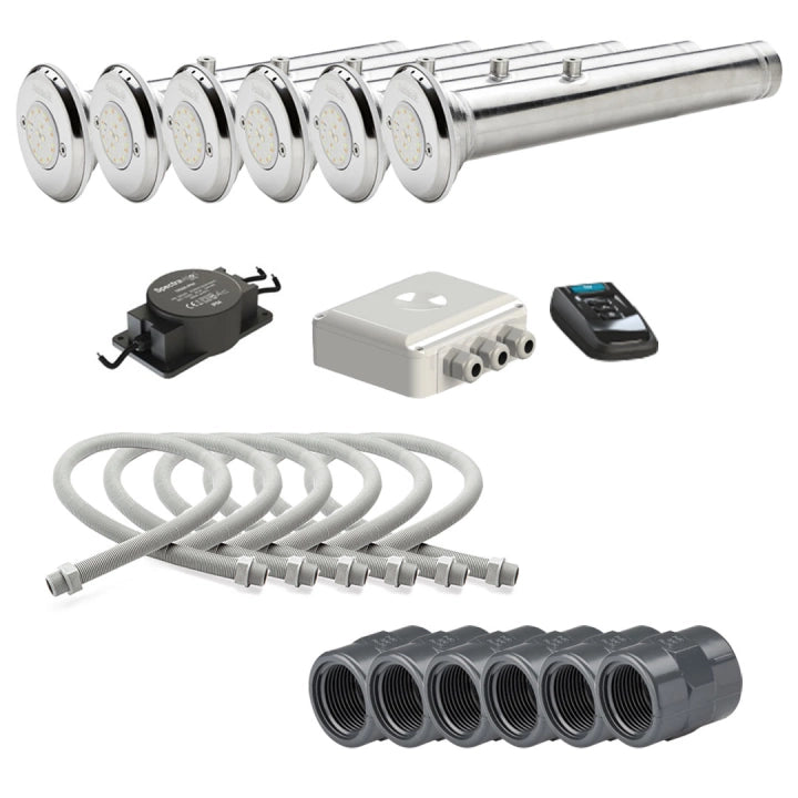 Kompletta paket för poolbelysning i både plast och rostfritt.