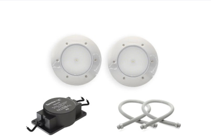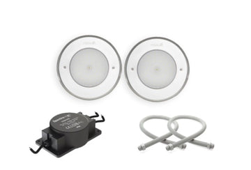 Paket med 2 st lampor 20W, 2 st kabelrör, 1 st transformator. Välj mellan lampor i modell Classic eller Marine i droplisten ovan.