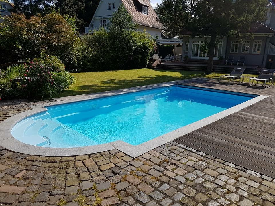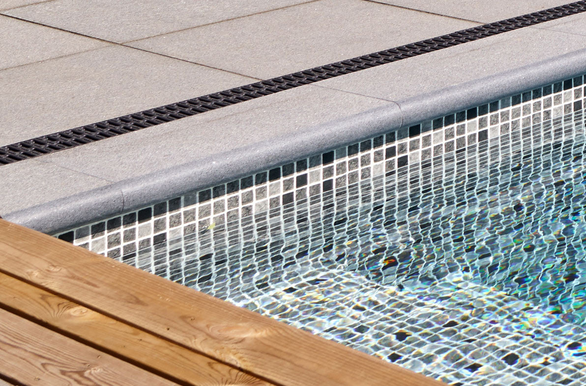 Förhöj din pool med denna rundade L-profil, som döljer fogarna och övergången från pool till kant.