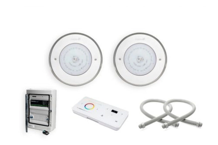 Belysningspaket som innehåller 2 st lampor Classic 66W, 2 st kabelrör, 1 st kontrollbox med transformator, 1 st fjärrkontroll
