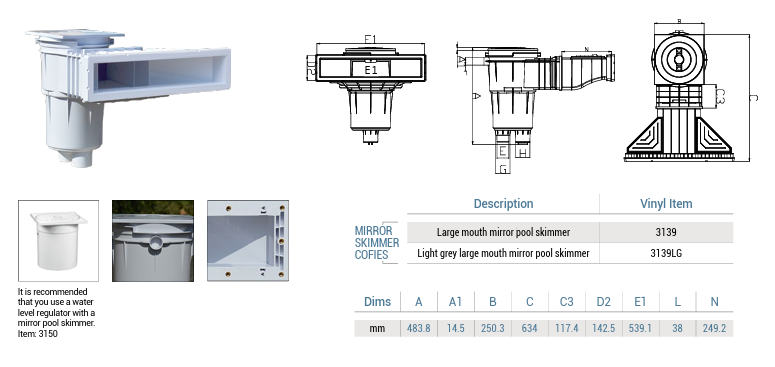 Skimmern från Hayward / Cofis ger med sin smala design en minimalistisk look. Resultatet blir att din pools vattenlinje är cirka 5 cm högre än med en konventionell skimmer, vilket skapar en spegeleffekt på poolen.