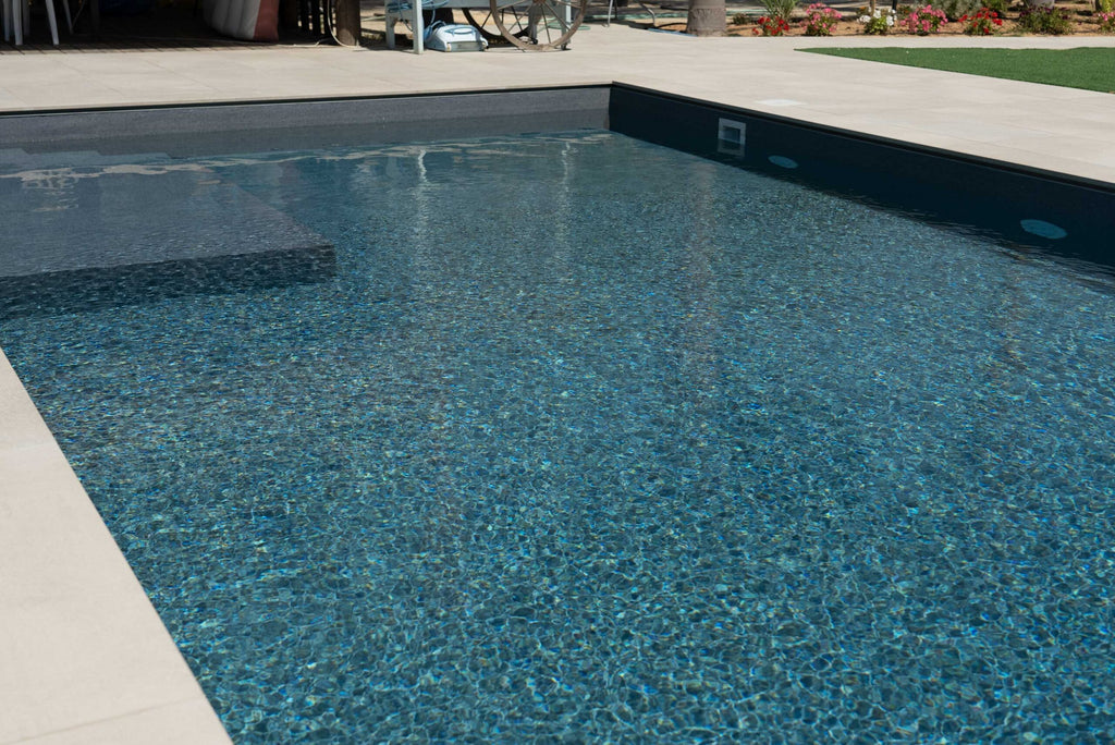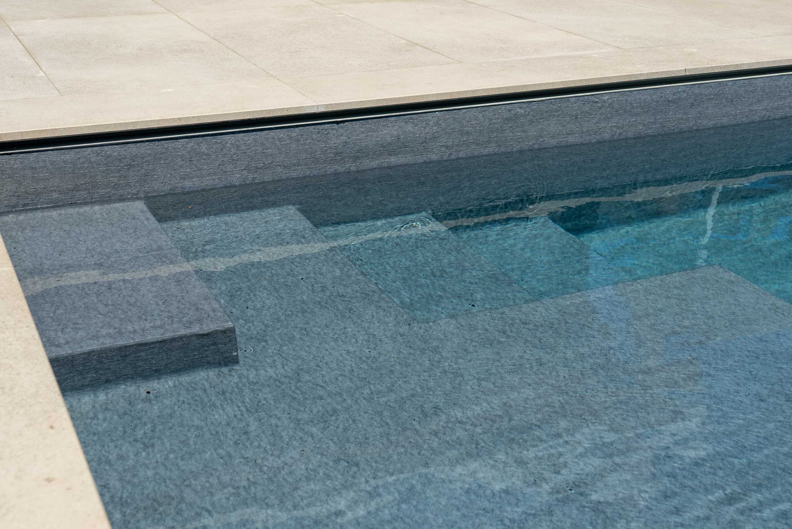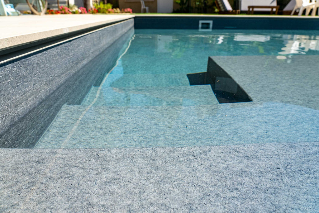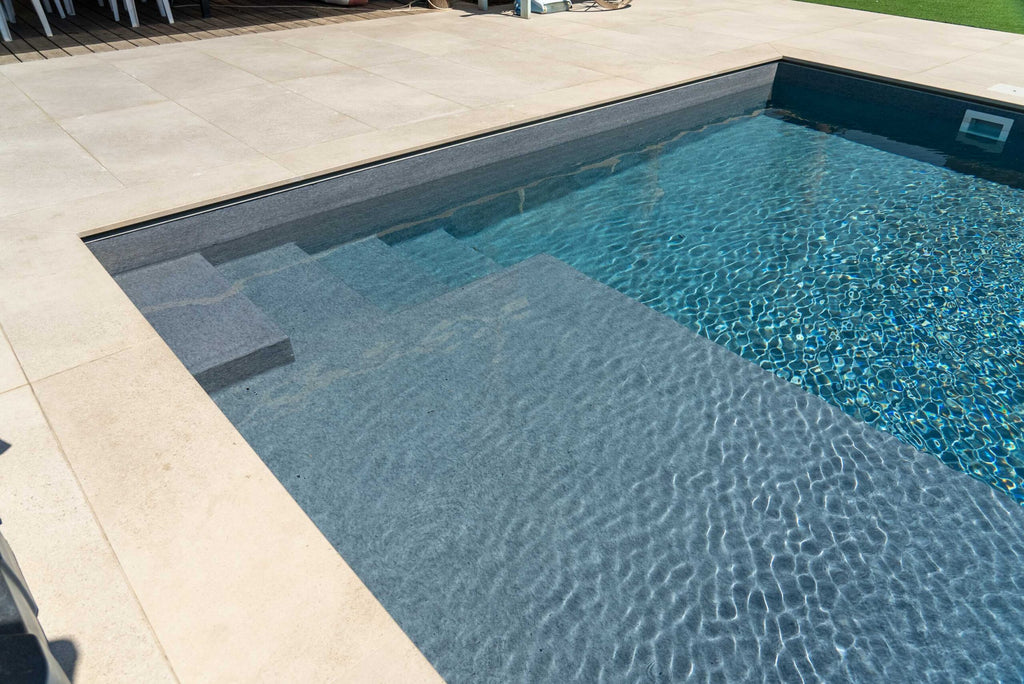 Concrete-designen fångar essensen av urban minimalism, med en 3D-yta som ser ut som riktig sten i eleganta gråtoner. Dess råa, arkitektoniska textur ger en djärv och modern touch till din pool, vilket skapar en raffinerad tillflyktsort som blandar elegans med modern design.