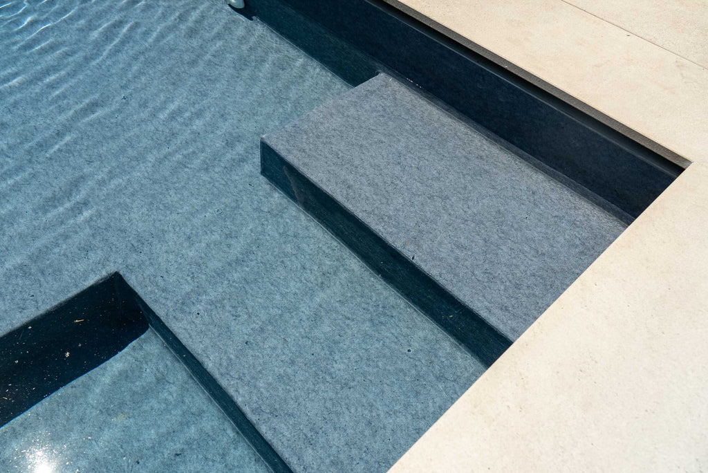 Tillverkad av ett förstärkt PVC-membran garanterar StoneFlex Concrete överlägsen fläckbeständighet, enkel rengöring och enastående UV-skydd, vilket gör det till ett premiumval för poolfoder. Med en torrstensfinish, halkfritt grepp och sex lager skyddande akrylbeläggning med en halkskyddsklassning C garanterar denna design långvarig prestanda tillsammans med slående estetik.