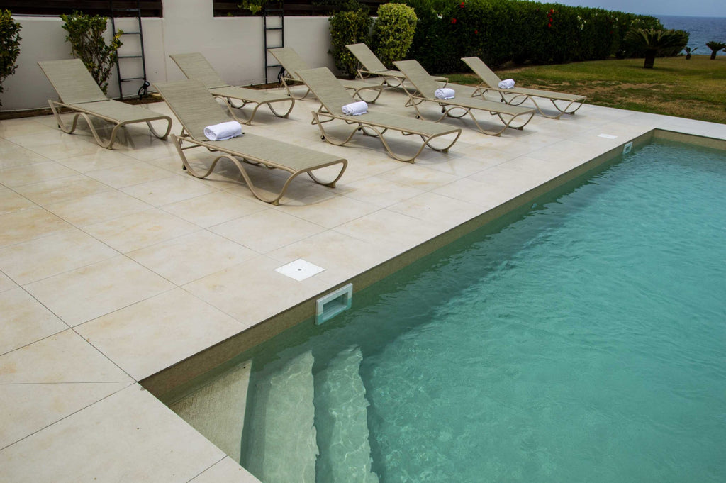 Sand-designen framkallar värmen och lugnet i naturliga ökenlandskap, med en 3D-yta som ser ut som riktig sten i gyllene beige toner. Denna solbelysta textur skapar en ljus och inbjudande atmosfär som förvandlar din pool till en fridfull oas som blandar naturlig skönhet med raffinerad elegans.